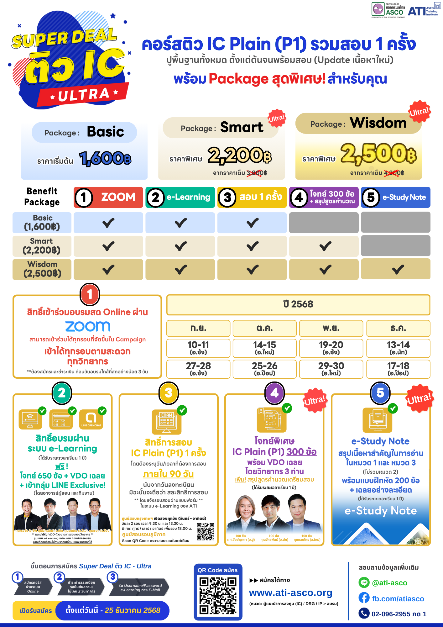 Package โจทย์พิเศษ! IC Plain (P1) จำนวน 100 ข้อ เมื่อเลือกวิทยากรแล้ว ไม่สามารถเปลี่ยนแปลงวิทยากรได้