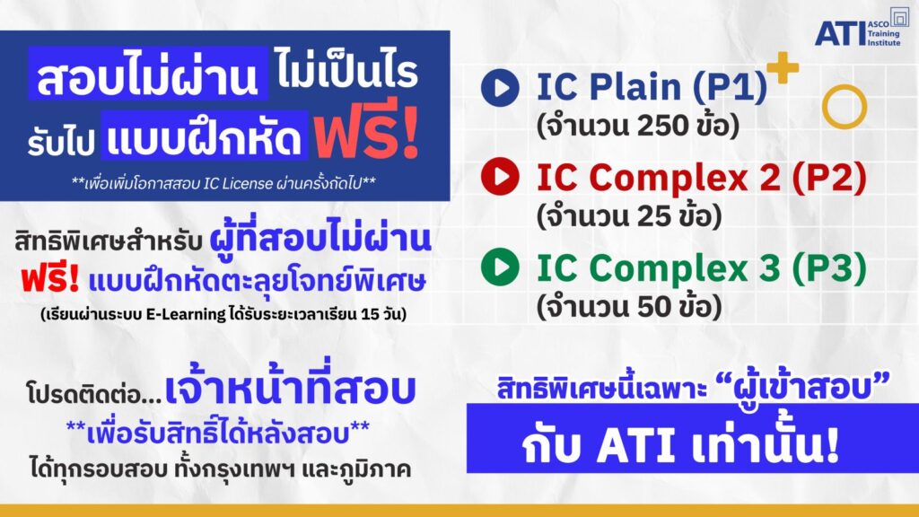 - แบบทดสอบวัดระดับความรู้ก่อนสมัครสอบ IC License (P1/P2/P3) มีรายละเอียดดังนี้