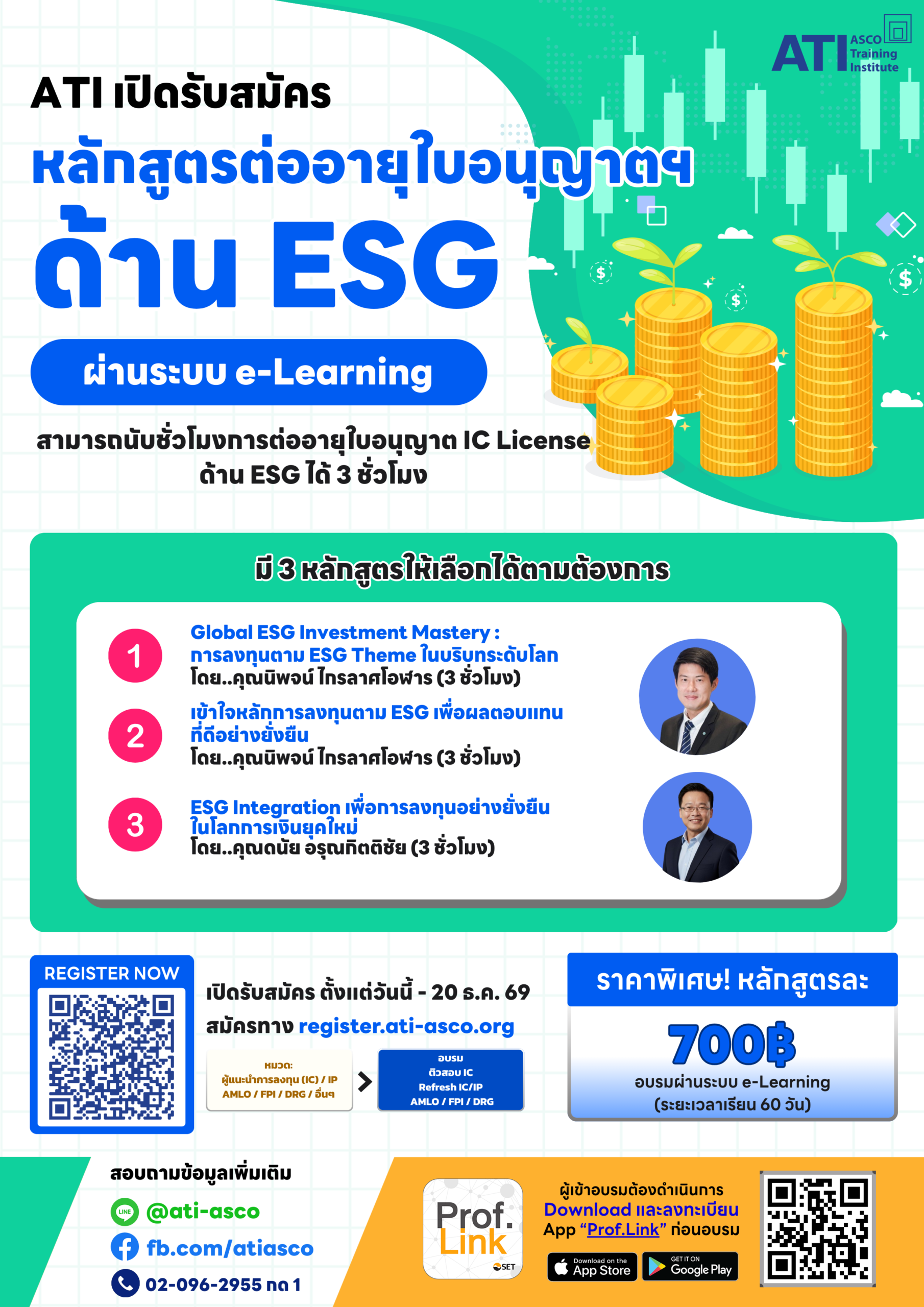 หลักสูตร ต่ออายุใบอนุญาตฯ ด้าน ESG ผ่านระบบ e-Learning