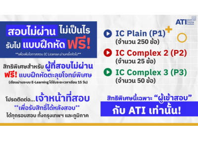สิทธิพิเศษสำหรับผู้ที่สอบไม่ผ่าน IC License (P1/P2/P3) รับฟรี! แบบฝึกหัดตะลุยโจทย์พิเศษจาก ATI