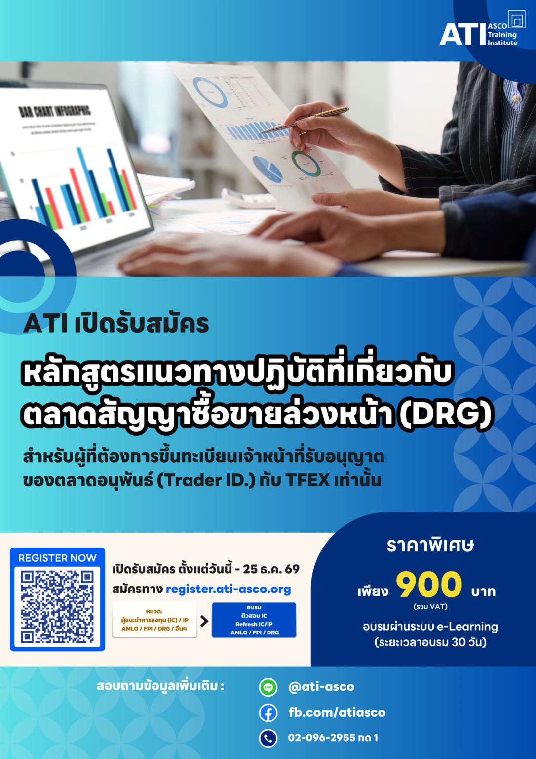 หลักสูตร DRG สำหรับผู้ที่ต้องการขึ้นทะเบียนเจ้าหน้าที่รับอนุญาต ของตลาดอนุพันธ์ (Trader ID.) กับ TFEX เท่านั้น