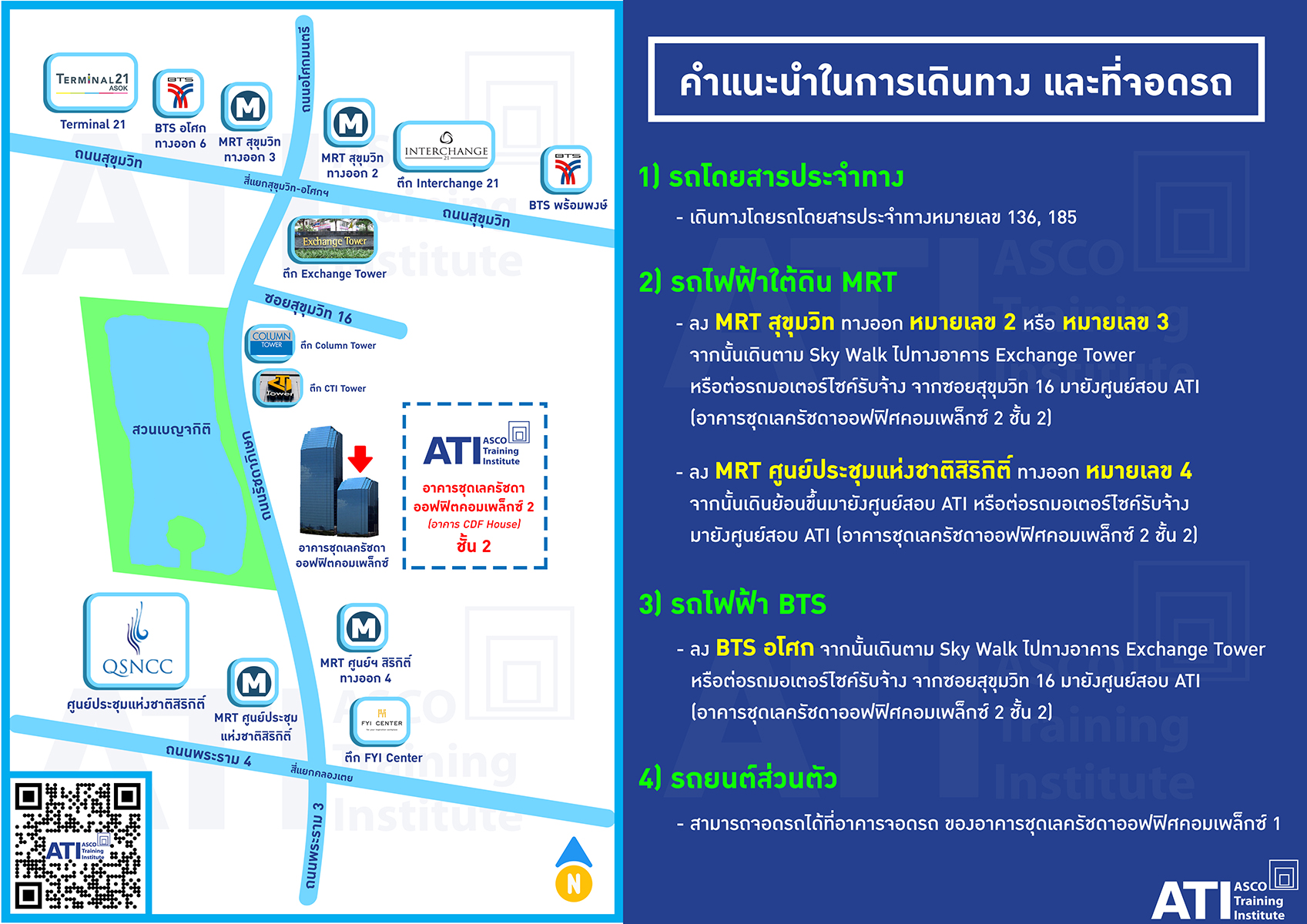 3. เดินทางโดยรถไฟฟ้า BTS ลงสถานีอโศก เดินตาม Sky Walk ไปยังอาคาร Exchange หรือต่อรถมอเตอร์ไซค์รับจ้าง