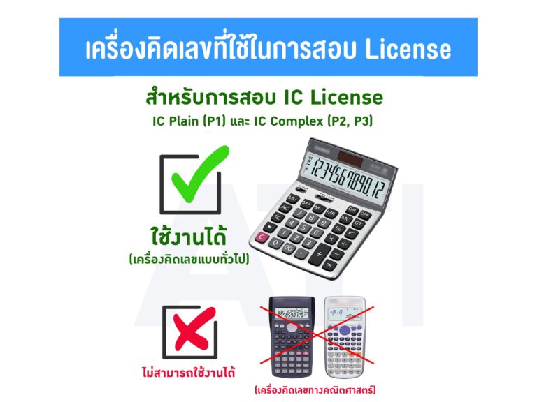 - สถาบันฯ อนุญาตให้ผู้เข้าสอบใช้เครื่องคิดเลขตามรุ่นที่ระบุไว้ในระเบียบปฏิบัติแต่ละหลักสูตร โดยผู้เข้าสอบต้องจัดเตรียมมาเอง
