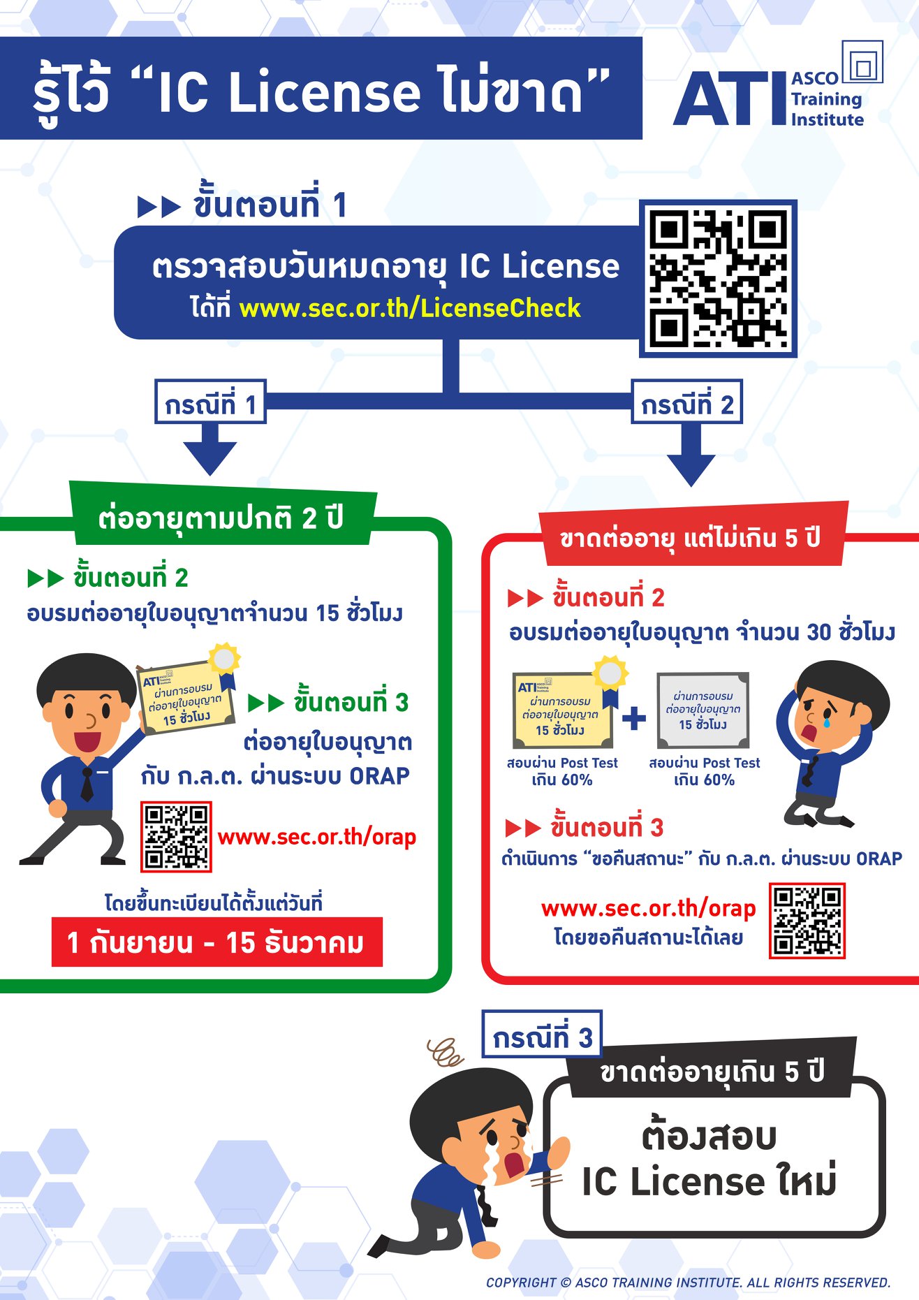 ท่านต้องยื่นต่ออายุในอนุญาตกับสำนักงาน ก.ล.ต. โดยยื่นคำขอต่ออายุผ่านระบบอิเล็กทรอนิกส์ online (ระบบ ORAP) ที่ https://www.sec.or.th/orap ระหว่างวันที่ 1 ก.ย. – วันทำการสุดท้ายของปีที่หมดอายุ (ข้อมูล ณ วันที่ 10 ธันวาคม 2567)