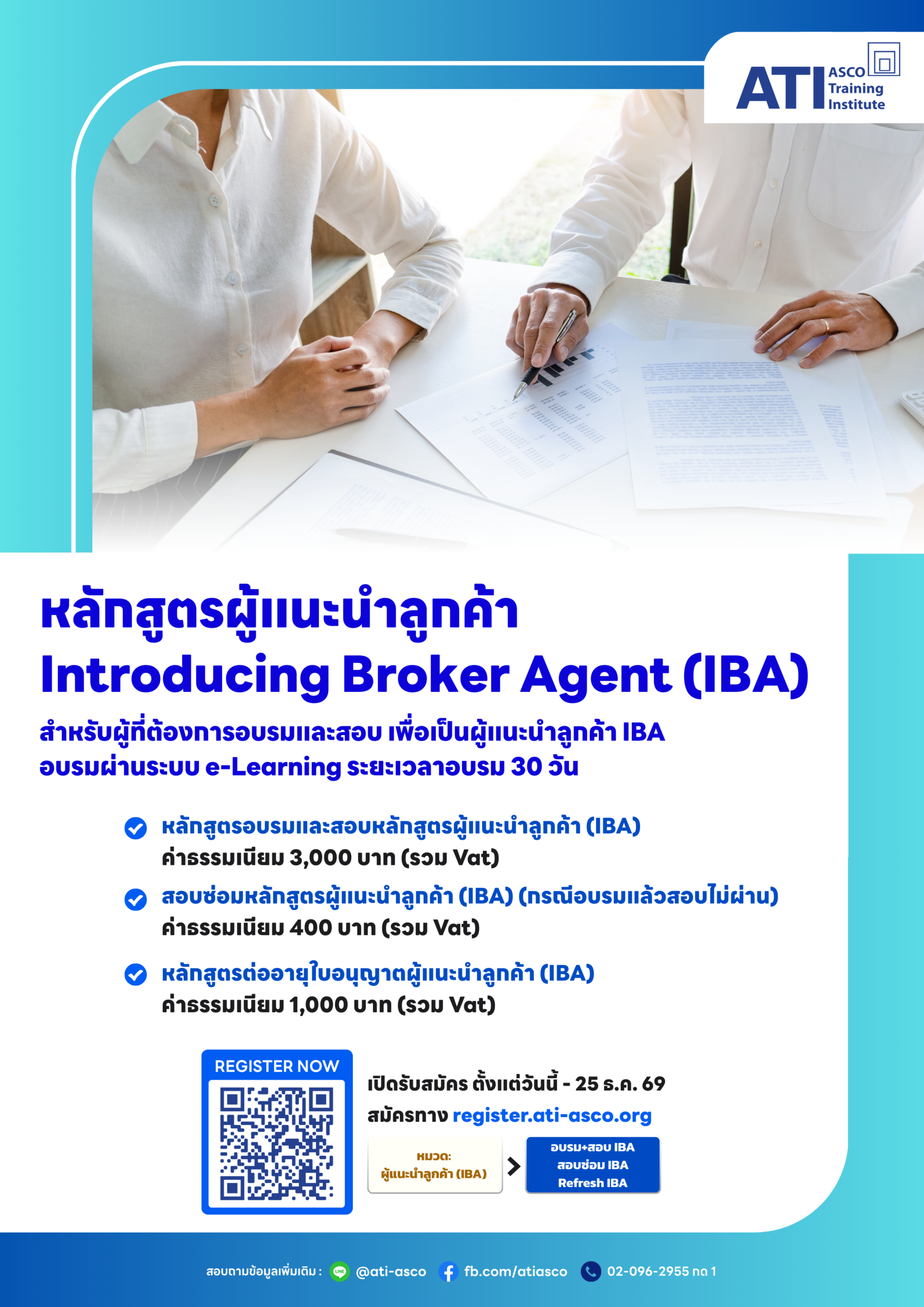 หลักสูตร IBA (Introducing Broker Agent)สำหรับผู้ที่ต้องการอบรม และสอบ เพื่อเป็นผู้แนะนำลูกค้าสำหรับต่ออายุใบอนุญาตผู้แนะนำลูกค้า