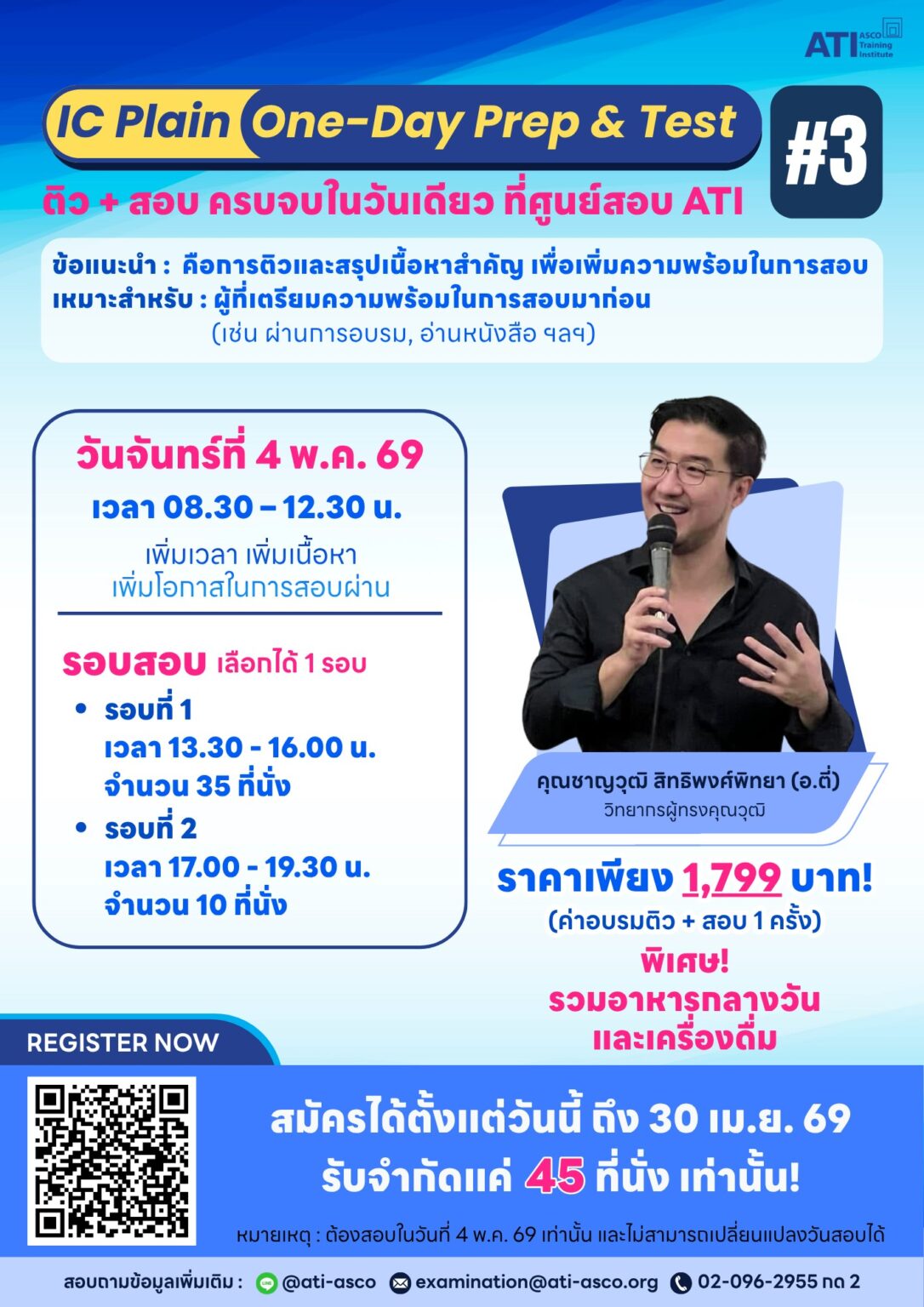 🌟ติว + สอบ ครบจบในวันเดียว ที่ศูนย์สอบ ATI ในวันจันทร์ 4 พฤษภาคม 2569