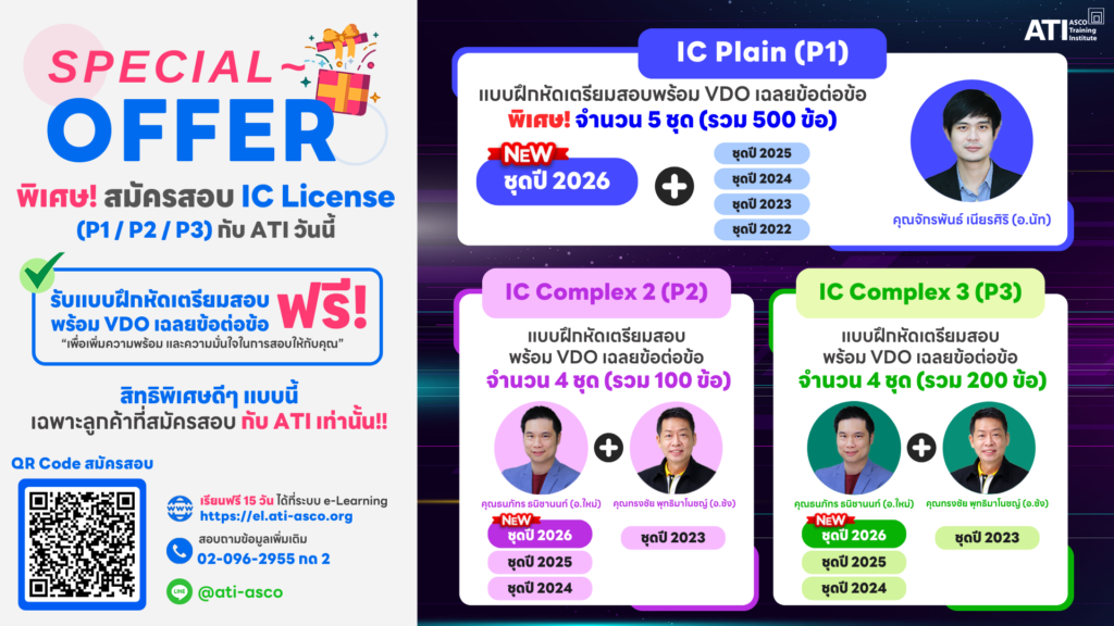 [Special Offer 2026] สมัครสอบ IC License กับ ATI วันนี้ (P1 / P2 / P3) รับฟรี!! แบบฝึกหัดเตรียมสอบ+VDO เฉลย สูงสุดถึง 500 ข้อ!!
